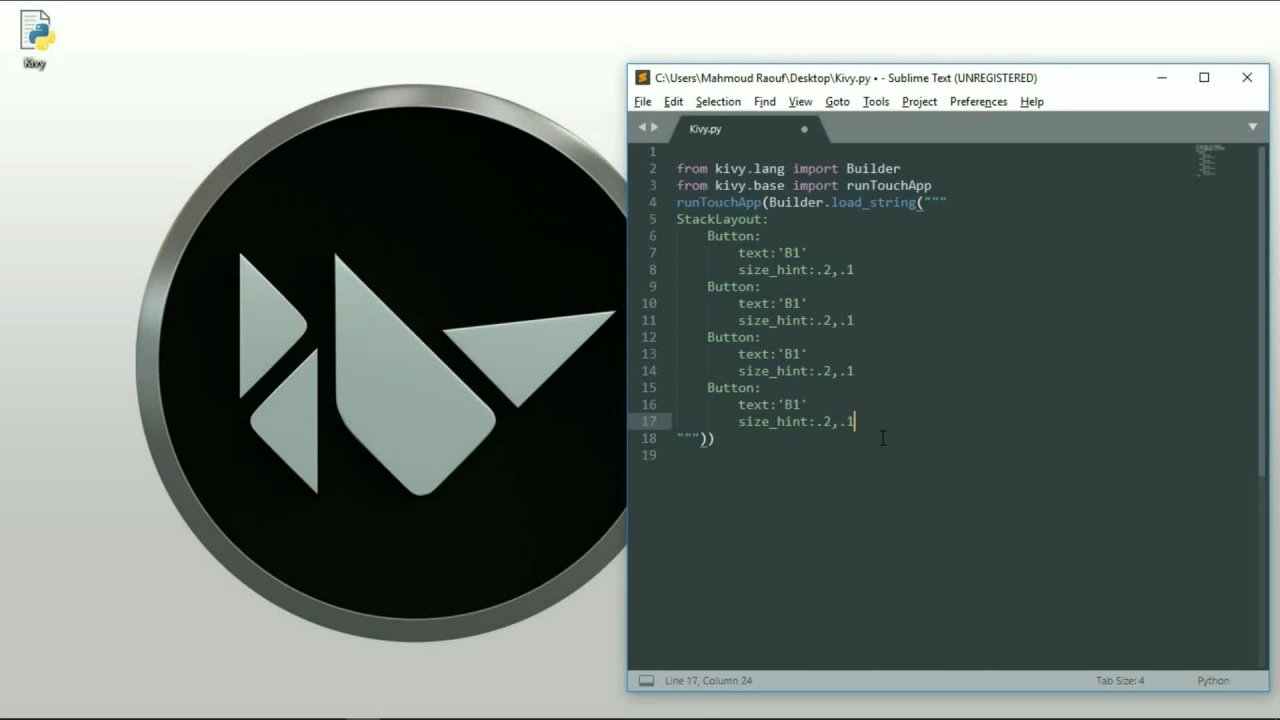 › python-add-label-to-a-kivyPython | Add Label to a kivy window - GeeksforGeeks Apr 18, 2022 · The Label widget is for rendering text. It supports ASCII and unicode strings. The label is the text which we want to add to our window, give to the buttons, and so on. On labels, we can apply the styling also i.e increase text, size, color, and more. Let’s see how to add Label to a Kivy window. Kivy Tutorial – Learn Kivy with Examples. kivy.org › doc › stableApplication — Kivy 2.1.0 documentation In addition to running an app normally, Kivy can be run within an async event loop such as provided by the standard library asyncio package or the trio package (highly recommended). Background¶ Normally, when a Kivy app is run, it blocks the thread that runs it until the app exits.