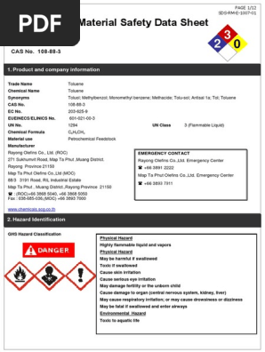 Hazardous Materials Slide Presentation - Occupational Safety … Category 2 – acetone, benzene, ethyl alcohol, gasoline isopropyl alcohol, toluene. Category 3 – naphtha, turpentine, xylene. Category 4 – ethylene glycol, glycerine. Cryogenics and refrigerated liquids – oxygen, nitrogen, argon, hydrogen, helium LNG, Liquid methane, carbon monoxide . Liquefied petroleum gases (LPGs) – propane, propylene, butane, and butylene. Explosives and … New Environment Inc. - NFPA Chemicals NFPA 704 Marking System The National Fire Protection Association (NFPA), in section 704 of the National Fire Code, specifies a system for identifying the hazards associated with materials. Information contained on this and linked pages comes directly from the 1990 edition of NFPA 704. Although the system was developed primarily with the needs of fire protection agencies in … ETHYL BENZENE | Occupational Safety and Health Administration 14/04/2021 · Toluene, sec-Butyl Acetate, Benzene and Isobutyl Alcohol all have/are known interferences. Please indicate on the 91A which of these compounds are known to be present. There is no need to contact SLTC before sampling. *80 min (4L) **Peak sampling 1 min (0.05 L) and Ceiling sampling 5 min (0.25 L) ***STEL sampling 15 min (0.75 L) ****120 min (6 L)