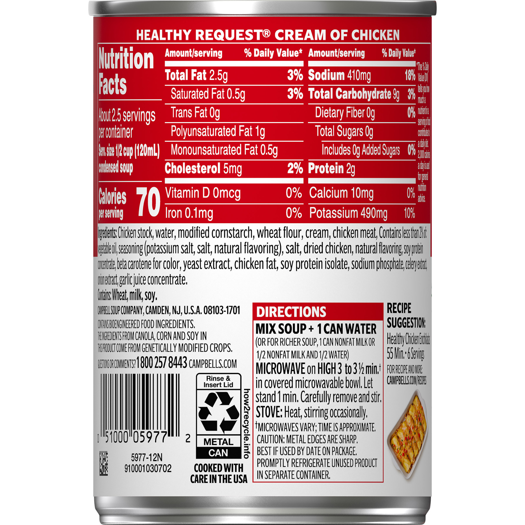 Campbell's cream of mushroom soup nutrition label. Calories in Campbell's Cream of Mushroom Soup and Nutrition Facts Mar 9, 2022 ... Cream of Mushroom Soup ; Calories. 100 ; Fat. 7 g ; Carbs. 8 g ; Protein. 2 g ; Serving Size, 1/2 cup (120 ml) ... Nutrition Facts for Campbells Cream Of Mushroom Soup Condensed Campbells Cream Of Mushroom Soup Condensed ... Where do the calories come from? ... A donut chart showing which nutrients contribute to the caloric total. There are ... CAMPBELL'S, condensed, Cream of Mushroom Soup CAMPBELL'S, condensed, Cream of Mushroom Soup contains 104 calories per 129 g serving. This serving contains 7.1 g of fat, 1.7 g of protein and 8.5 g of ... Campbell's Condensed Cream of Mushroom WATER, MUSHROOMS, VEGETABLE OIL (CORN, CANOLA AND/OR SOYBEAN), CREAM, MODIFIED CORNSTARCH, WHEAT FLOUR, SALT, MODIFIED MILK INGREDIENTS, SOY PROTEIN ISOLATE, ...