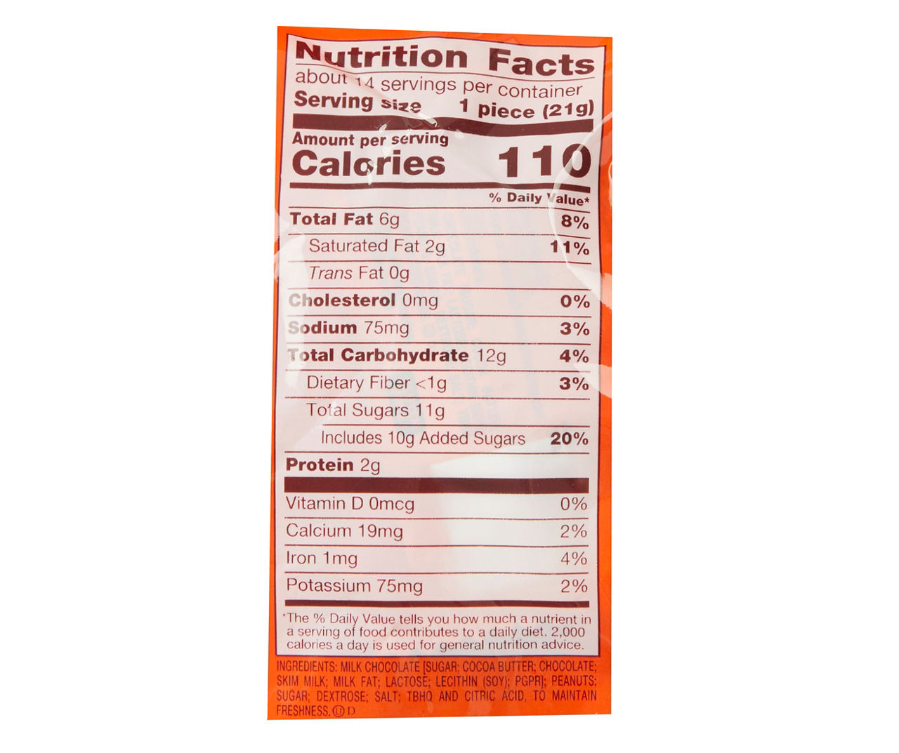 Reese's peanut butter cups nutrition label
