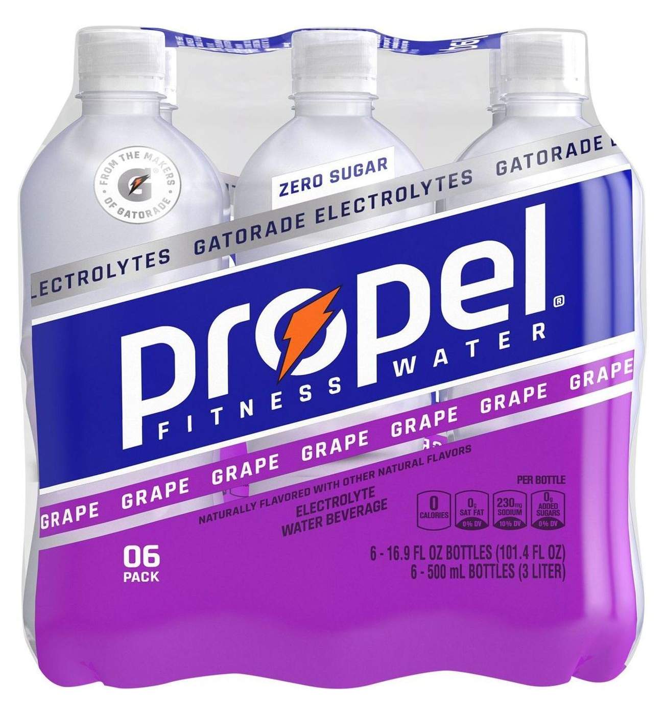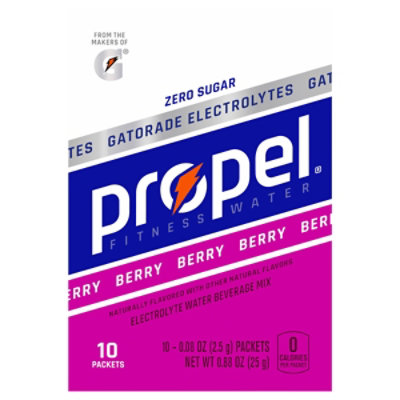 The Facts About Your Favorite Foods and Beverages (U.S ... Propel Electrolyte Water contains zero calories per serving and vitamins B, C & E. More Information Serving Size 1 Bottle (591 mL) Caffeine 0mg Phosphorus 148 mg (10% DV) Sweeteners: Acesulfame Potassium, Sucralose Additional package sizes Click to view 20 fl oz 16.9 fl oz 24 fl oz 33.8 fl oz propelwater.com Where To Buy Product Fact Sheet Propel Water Nutrition Facts & Calories - Inlivo Contains a low amount of risky components that may include sodium and sugars (0%/oz). This item has no fiber content (0% of DV/100g). Calories in 1 Cup (8.4 oz) 12 calories / 0 from fat Carbohydrates 2.9 g Proteins 0 g Fat 0 g Saturated Fat 0 g Calories Nutrition Risky Content Low Density (0.1 cal/g) High Density (204.6 %/cal) Low Density (0 %/g) Product Landing Page | Propel Official Site - Propel Water Great flavors with Gatorade Electrolytes, to help you hydrate and enjoy your best workout with zero sugar.