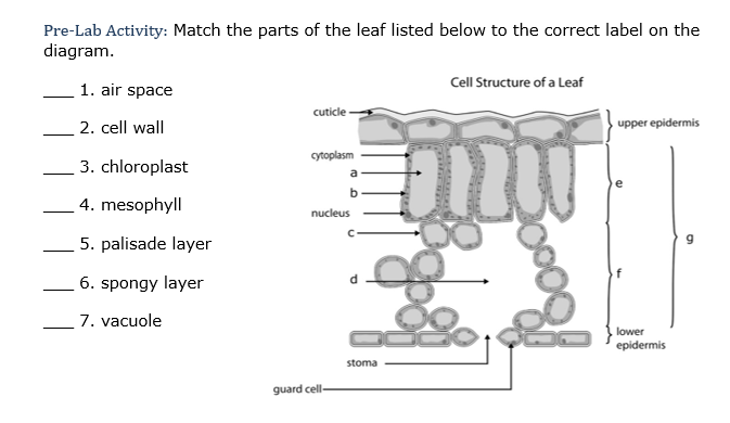 13.1: Leaf Parts and Arrangement - Biology LibreTexts Leaf Parts Leaves are generally composed of a few main parts: the blade and the petiole. Figure 13.1. 2: A leaf is usually composed of a blade and a petiole. The blade is most frequently the flat, photosynthetic part. The petiole is a stem that attaches the leaf blade to the main stem of the plant. Leaf structure - Structure of plants - WJEC - BBC Bitesize Palisade cells are column-shaped and packed with many chloroplasts. They are arranged closely together so that a lot of light energy can be absorbed. A cross-section through a leaf Features of...